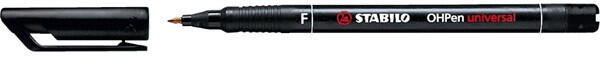 Stabilo OHPen 842 F fekete permanent marker - Szinte minden sima felületen használható - Vonalvastagság: 0,7 mm - Légáteresztő szeleppel ellátott kupak - Hosszú nyitva tarhatósági idő: kb. 72 óra - Szín: fekete