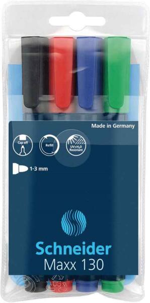 PERMANENT MARKER KÉSZLET, 1-3MM, KEREK HEGYŰ HEGYŰ, SCHNEIDER MAXX 130, 4 KLF. SZÍN