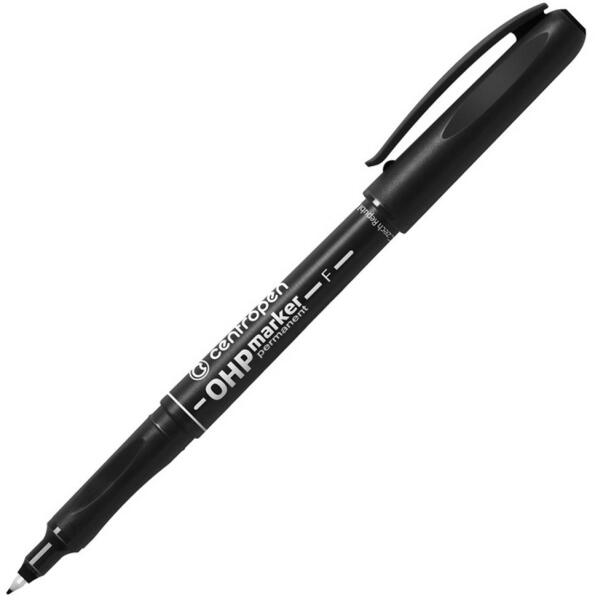 PERMANENT MARKER F 0,6MM OHP FEKETE CENTROPEN 2636 Írásvetítő fólia, fólia, műanyag, üveg, fém, fa, szinte minden felület feliratozására, jelölésére alkalmas, OHP-permanent festékkel töltött marker, műanyag foglalatú írócsúccsal. Gyorsan száradó, színtartó festék, írásképe törlés- és vízálló. A festék nagy fényáteresztő képességgel rendelkezik, ami vetít