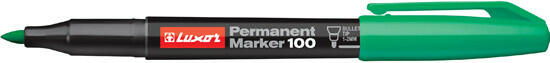 Gyorsan száradó színtartó festék, írásképe törlés- és vízálló, szinte minden felület feliratozására alkalmas. Luxor rostirón, Permanent Marker 100 B, 1-2 mm, zöld. Alkoholbázisú, kemény akril heggyel rendelkező, a legtöbb felületen használható marker. Ideális mindennapi irodai és otthoni használatra. Írásképe száradás után törlés és vízálló. Xilol és tolu