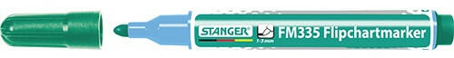 Flipchartmarker Stanger FM335 kerek 1-3 mm zöld írásvastagság: 1-3 mm kivitel: kerek hegyű szín: zöld nem üt át a flipchart papíron kupak nélkül hosszú ideig használható