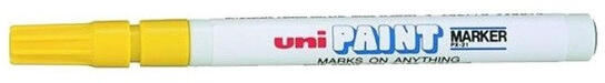 Uni PX-21 sárga lakkmarker - A legmagasabb igényeket kielégítő, nagy fedőképességű lakkfilc, ipari jelölő és kreatív területekre - Minden felületen víz-, hő- és UV-álló az íráskép - Szalagon, szöveten az oldószer nem hagy nyomot - Alumínium tollszárban gazdaságos tintaadagolással, cserélhető heggyel, a tinta színével megegyező kupakkal rendelkezik - Írásvastags