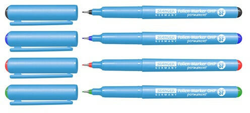 Marker Stanger OHP permanent SF 4 db-os klt. alkoholbázisú fóliamarker, 4 db-os készlet permanent festékkel töltött gyorsan száradó, színtartó tinta törlés- és vízálló íráskép felhasználási felületek: fólia, műanyag, üveg, fém írásvastagság: 0,4 mm