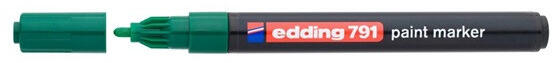 Edding 791 1-2mm zöld lakkmarker - Üveg, porcelán, műanyag, fém illetve szinte minden felület feliratozására, jelölésére alkalmas - Különösen ajánlott szennyezett felületekhez - Kerekített csúcs, műanyag test, permanent, lakkszerűen fedő festékkel töltve - Gyorsan száradó festék, írásképe törlés- és vízálló, magas fény- hő- és törlésálló - Festékadagolás