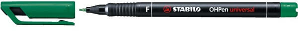 Stabilo OHPen 842 F zöld permanent marker - Szinte minden sima felületen használható - Vonalvastagság: 0,7 mm - Légáteresztő szeleppel ellátott kupak - Hosszú nyitva tarhatósági idő: kb. 72 óra - Szín: zöld