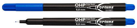 Alkoholos marker FORTUNA OHP F kék Alkoholbázisú, permanent festékkel töltött marker precíziós fémfoglalatú írócsúccsal. Írásvastagság: 0,8mm.