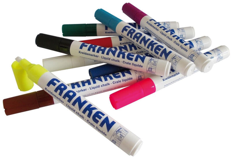 Táblamarker üvegtáblához 2-5 mm vegyes színek FRANKEN 10db/csom Speciális üvegtábla marker. 2-5 mm vonalvasatagság. Színek: lila, zöld, fekete, piros, kék, fehér, barna, rózsaszín, türkiz, sárga Katalóguskód: 30773