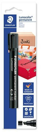Marker Staedtler Lumocolor permanent vágott fekete rendszerezéshez bliszteres Univerzális permanent marker, mely szinte bármely felületen használható Írásvastagság: 2,0 - 5,0 mm Beszáradásbiztos: napokig kupak nélkül tárolva sem szárad be Különösen alkalmas a papír- és tárolódobozok, valamint egyéb rendszerezésre, költözéshez használt dobozok jelölésére Pillanatok a