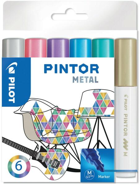 vízbázisú marker M méret, 6 metál szín tökéletes a rajzoláshoz, színezéshez, díszítéshez, jelöléshez, íráshoz, kalligráfiához egyedi, jól fedő pigmenttinta, bármely felületen alkalmazhatő, porózus felületről - fa, papír, kartonpapír, ruha vagy kőzet- a tinta nem eltávolítható, krétatáblákról, műanyag, üveg, vagy fém felületekről nedves ruhával letörölh