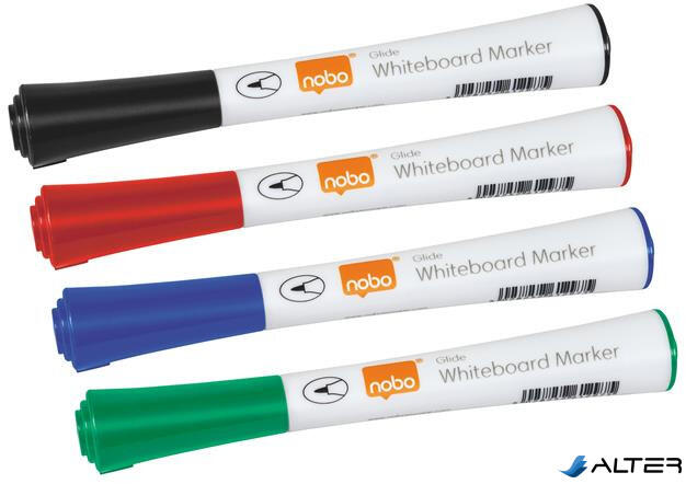 Glide táblamarkerek vastag és egyenletes vonalak készítéséhez szárazon törölhető és nem porózus - pl. üveg vagy zománcozott felületeken. Használd Nobo fehértáblákon az optimális teljesítmény érdekében! -gyorsan száradó tinta -enyhe szagú tinta -ideális iskolai, irodai vagy otthoni használatra -kúpos hegy -vastagság: 1 mm -kiszerelés: 4 db különböző színű marke