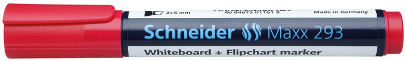 TÁBLA- ÉS FLIPCHART MARKER 2-5 MM VÁGOTT VÉGŰ SCHNEIDER MAXX 293 PIROS Univerzális marker flipchart táblákhoz és papíralapú felületekhez, vízálló szinte szagtalan, a fehértáblákról szárazon törölhető, oldószermentes. Kupak nélkül 2-3 napig nem szárad be. Katalóguskód: 36357
