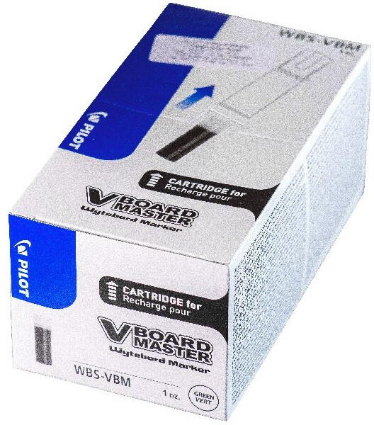 Pilot BeGreen V-Board Master 12 db/csomag zöld táblamarker betét Pilot BeGreen V-Board Master táblamarker utántöltő tintapatron, 6 ml Folyamatos tintaáramlási rendszere miatt írásképe állandó minőségű az utolsó csepp tintáig! Könnyű letörölni, a tinta nyom nélkül eltűnik. Tinta színe: zöld
