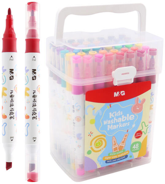 M&G - Kétoldalas filctoll gyerekeknek, könnyen mosható – 48 színből álló készlet