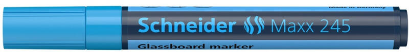 ÜVEGTÁBLA MARKER 1-3 MM SCHNEIDER MAXX 245 KÉK Kerek hegy, ideális üvegtáblák, más üvegfelületek, tükör, ablak dekorálására és írására, alkoholbázisú, nagy fedőképességű, fényálló tinta. Ragyogó, intenzív színek. Szelepes technológiával készül. Katalóguskód: 36361