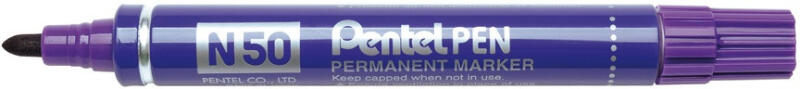 PERMANENT MARKER 4,3MM N50-VE PENTEL LILA Magas minőségű, kedvező árfekvésű vastag, gömbhegyű alkoholos marker Számtalan felhasználási területen alkalmazható, szinte bármilyen anyagon használható, többek között karton, fém, fa, műanyag, üveg, gumi, stb. Nagyon ellenálló hegye és magas minőségű alumínium teste van, 8 színben érhető el. Írásvastagság: 2,2 mm. és