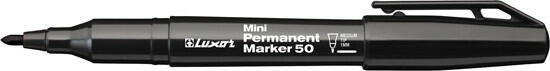 Gyorsan száradó színtartó festék, írásképe törlés- és vízálló, szinte minden felület feliratozására alkalmas. Luxor rostirón Mini Permament Marker 50 M, fekete. Mini kivitelű alkoholbázisú, a legtöbb felületen használható permanent marker. Xilol- és toluol mentes.