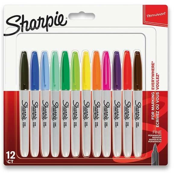 Sharpie marker permanens tintával minden típusú felülethez. A készlet 12 darab standard színű, állandó markert tartalmaz, vékony F. heggyel. Az írás hossza kb. 225 m. További leírás:mindenféle papírhoz, kartonhoz, műanyaghoz, üveghez gyorsan szárad víz- és fényálló szürke műanyag test, fedél a töltelék színében kerek hegy 0,9 mm 0,9 mm-es markerA színek tartósság