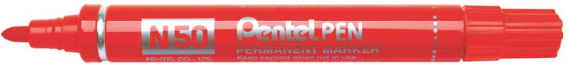 PERMANENT MARKER 4,3MM N50-BE PENTEL PIROS Magas minőségű, kedvező árfekvésű vastag, gömbhegyű alkoholos marker Számtalan felhasználási területen alkalmazható, szinte bármilyen anyagon használható, többek között karton, fém, fa, műanyag, üveg, gumi, stb. Nagyon ellenálló hegye és magas minőségű alumínium teste van, 8 színben érhető el. Írásvastagság: 2,2 mm. és