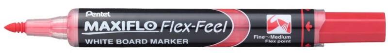 Táblamarker 1-5mm, hajlékonyhegyű, PENTEL Maxiflo Flex Feel piros A Pentel Maxiflo Flex Feel táblafilc egy egyedülálló újdonság. Különlegessége a rugalmas kúpos hegy, mellye tetszés szerint variálható az írásvonal vastagsága 1mm és 5mm között. HASZNÁLJA AKÁR KALLIGRAFIKUS ÍRÁSRA! A Pentel Maxiflo táblafilc pumpás megoldásával kivédheti a gravitáció hatását, akár