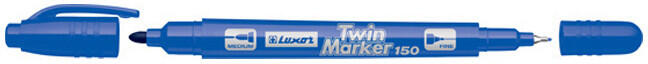 Gyorsan száradó színtartó festék, írásképe törlés- és vízálló, szinte minden felület feliratozására alkalmas. Luxor rostirón, Permament Twin Marker 150, kétvégű F-M, 0,7 és 1 mm, kék. Víznek és napsugárzásnak ellenálló, gyors száradású, festékbázisú tinta. A legtöbb felületen használható marker. Xilol- és toluol mentes.