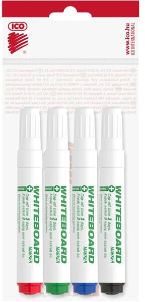 ICO 11 XXL Whiteboard Z4 antibakteriális 4 különféle színű táblamarker Antibakteriális whiteboard marker, fehér táblára való írásra, rajzolásra. A műanyag alkatrészek antibakteriális védelmet adó Biomaster ezüst-ionokat tartalmaznak (biocid hatóanyag: ezüst-foszfát üveg). Az ICO Antibakteriális termékei bizonyítottan baktériumölő tulajdonsággal rendelkeznek, a felsz