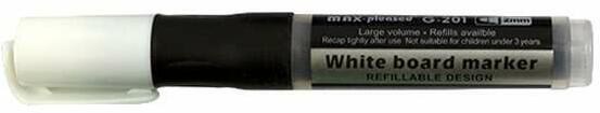 Kerekhegyű, vízbázisú táblamarker. A folyadéktartálynak köszönhetően folyamatos a tinta áramlás és soha nem szárad ki. Használat előtt rövid ideig tartsa heggyel lefelé a markert.