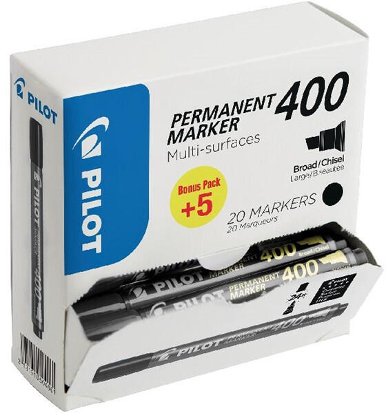 Pilot BT 400 20 db/csomag fekete permanent marker Fogadd el a kihívást! Új szereplő a profik között, megjelent az új Pilot Permanent Marker! Hogy mi a feladata? Mindenre írni: fára, fémre, műanyagra... bárhova. Mi az előnye? Mindennek ellenáll: víznek, fénynek, hidegnek, melegnek... használatra készen áll még akkor is, ha a hegy kupakja nélkül egy teljes napja szabadon van.