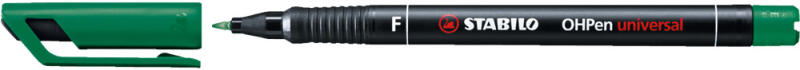 PERMANENT MARKER 0,7MM, STABILO OHPEN F ZÖLD Eredetileg írásvetítőkhöz kifejlesztett filctoll alkoholos tintával, csúszásmentes fogózónával. Szinte minden sima felületen alkalmazható, így minden jelöléssel kapcsolatos feladathoz ideális eszköz. 3 vonalvastagság – szupervékony (S: 0,4 mm), vékony (F: 0,7 mm) és közepes (M: 1 mm). Akár 3 napig kupak nélkül hagyható. Kat