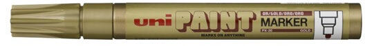 Uni PX-20 arany lakkmarker - A legmagasabb igényeket kielégítő, nagy fedőképességű lakkfilc, ipari jelölő és kreatív területekre - Minden felületen víz-, hő- és UV-álló az íráskép - Szalagon, szöveten az oldószer nem hagy nyomot - Alumínium tollszárban gazdaságos tintaadagolással, cserélhető heggyel, a tinta színével megegyező kupakkal rendelkezik - Írásvastagsá