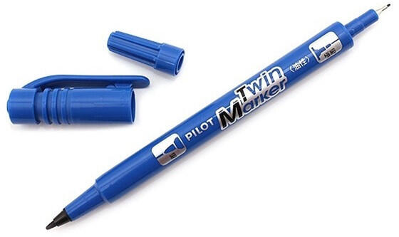 Pilot BeGreen Twin kék marker - Két marker egyben, alkoholos, kéthegyű permanent marker - a 0,5 mm vastag hegy rostokból áll, a 0,3 mm-es hegy műanyag - Xylolt nem tartalmaz - 76,1%-ban újrahasznosított anyagokból készült - Szín: kék
