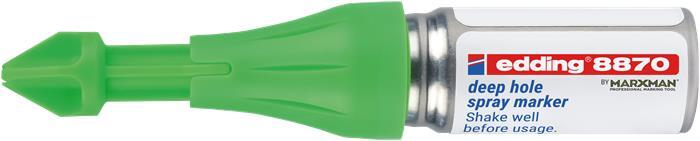 Folyékony kréta spray szabadalmaztatott pumpás mechanizmussal nem permanens jelölésre nehezen hozzáférhető helyeken, szinte minden anyagon. -egyedi formájú fúvókája 50 mm mélységű és 3-13 mm átmérőjű furatok jelölését teszi lehetővé -bármilyen szögből és magasságból használható, akár fej fölött is -a nem tartós folyékony kréta nem nedvszívó felületekről
