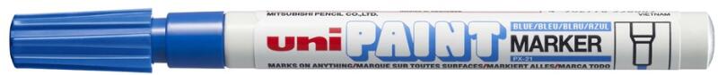 Lakkmarker 0,8-1,2mm, Uni PX-21 kék GHS piktogram: Figyelmeztetés: VeszélyFigyelmeztető mondatok:H225 Fokozottan tűzveszélyes folyadék és gőz. H332 – Belélegezve ártalmas. H315 – Bőrirritáló hatású. H318 – Súlyos szemkárosodást okoz. H373 – Ismétlődő vagy hosszabb expozíció eseténkárosíthatja a szerveket > vagy meg kell adni az összes érintett szervet, ha is