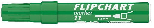 ICO Flipchart 11 zöld marker - Flipchart tömbök és egyéb papírívek feliratozására alkalmas - Vízbázisú festékkel töltött marker - A festék a papír másik oldalára nem üt át - Kerekített csúccsal - Vonalvastagság: 3 mm - Szín: zöld - FIGYELEM! Fehértáblára való írásra nem alkalmas!