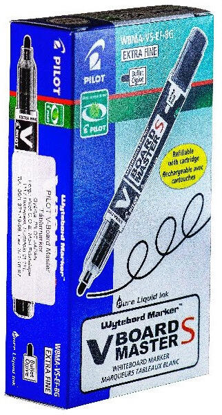 Pilot BeGreen V-Board Master S 10 db/csomag piros táblamarker Újratölthető, így gazdaságos és környezetbarát. Folyamatos tintaáramlási rendszere miatt írásképe állandó minőségű az utolsó csepp tintáig! Könnyű letörölni, a tinta nyom nélkül eltűnik. A BeGreen V-Board Master S marker újrahasznosított műanyag felhasználásával készült, mellyel a Pilot csökkenti ök