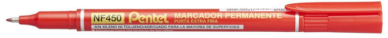 PERMANENT MARKER 1,2MM NF450-B PENTEL VÉKONY HEGYŰ OHP S PIROS Pentel alkoholos filctoll NF450 a mindennapos segítő. Magas minőségű alkoholos, extra fine hegyű 'S' marker, mely alkalmas standard felhasználásra, a mindennapok során és nagyon ellenálló. Írásvastagság, kb. : 0,5mm. Kimagaslóan gyors száradás és után vízállóság. Szinte az összes létező anyagra és felület