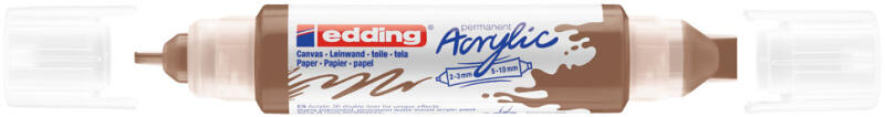 AKRIL MARKER 2-3MM ÉS 5-10MM 3D KÉTVÉGŰ EDDING 5400 MOGYORÓ Kétoldalú edding 3D akril tubus egyedi effektusokhoz és sötét és világos felületekre történő festéshez, ideális olyan anyagokhoz, mint a vászon vagy a festőpapír. - A kétoldalú tubus két különböző írócsúccsal rendelkezik 2 - 3 mm és 5 - 10 mm vonalvastagságban. - A kiváló minőségű, pigmentált, vízb