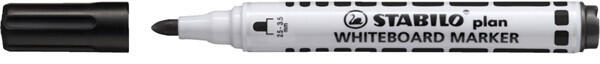 Stabilo Plan 2,5-3,5mm kúpos hegyű fekete táblamarker - Szinte minden felületre, gyorsan száradó vízbázisú tinta - Szárazon törölhető - Gömbhegyű - Vonalvastagság: 2,5-3,5 mm - Kupak nélkül sem szárad ki