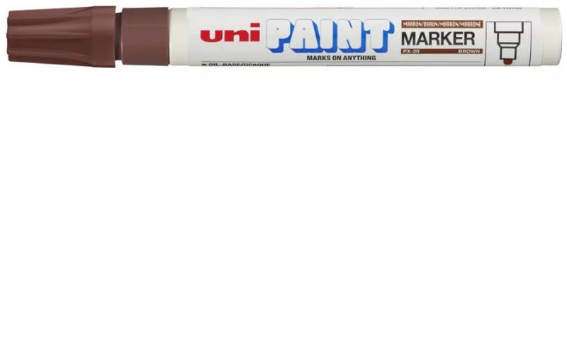 Lakkmarker 2-3mm, Uni PX-20 barna Lakkmarker 2-3mm, Uni PX-20 barna GHS piktogram: Figyelmeztetés: Veszély Figyelmeztető mondatok: H225 Fokozottan tűzveszélyes folyadék és gőz. H332 – Belélegezve ártalmas. H315 – Bőrirritáló hatású. H318 – Súlyos szemkárosodást okoz. H373 – Ismétlődő vagy hosszabb expozíció eseténkárosíthatja a szerveket > vagy meg kell adni az