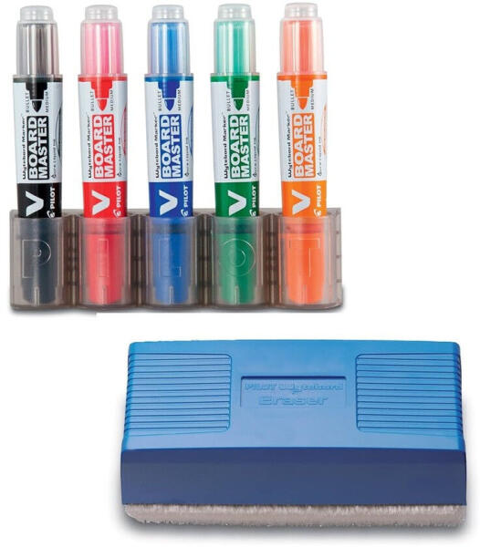 Folyékony tintás táblamarker készlet, kerek hegy, cserélhető betét. Rendkívül tartós, mégis könnyű letörölni. Írásvastagság: 2,3mm A szett tartalma: 5db marker (fekete, piros, kék, zöld, narancssárga); 1db markertartó; 1db mágneses táblatörlő Katalóguskód: 29297 TÁBLAMARKER 2,3MM KEREK 5-ÖS KLT+TÁBLATÖRLŐ MEDIUM V-BOARD PILOTGyártó : Pilot