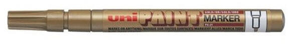 Uni PX-21 arany lakkmarker - A legmagasabb igényeket kielégítő, nagy fedőképességű lakkfilc, ipari jelölő és kreatív területekre - Minden felületen víz-, hő- és UV-álló az íráskép - Szalagon, szöveten az oldószer nem hagy nyomot - Alumínium tollszárban gazdaságos tintaadagolással, cserélhető heggyel, a tinta színével megegyező kupakkal rendelkezik - Írásvastagsá