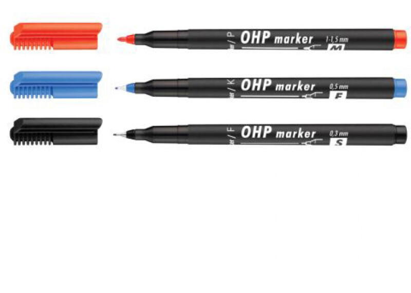 Alkoholbázisú festékkel töltött permanent marker. Gyorsan száradó, színtartó, írásképe törlés- és vízálló. Írásvetítő fólia, fólia, műanyag, üveg, fém, fa, diakeret, szinte minden felület feliratozására, jelölésére alkalmas. Kerekített csúcs (F, M, B). Vágott csúcs (C). Precízíós csúcs (S). .