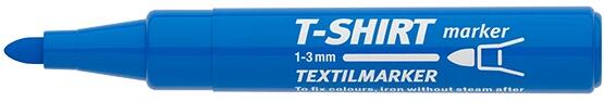 Textilmarker, textiliák pl:selyem, pamut, vászonra. Pl: tornacipő, póló, táska írására, jelőlésére alkalmas. Kerekített csúccsal, vízbázisú festékkel töltve, rendkívüli színtartóssággal és magas fényállósággal. A dekoráció rögzítése gőzmentes bevasalással történik. Rögzítés után 60 °C-ig mosható. Vonalvastagság: 1-3 mm.