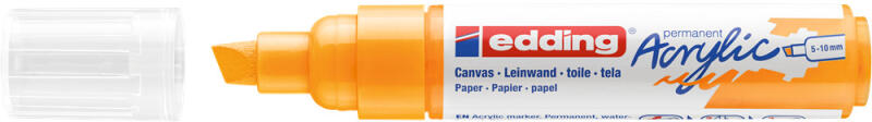 AKRIL MARKER 5-10 MM EDDING 5000 NARANCSSÁRGA D5 Akril marker világos vagy sötét felületekre történő festéshez, ideális olyan anyagokhoz, mint a vászon vagy a festőpapír. - A vágott írócsúcs vonalvastagsága 5-10 mm. - A kiváló minőségű, pigmentált, vízbázisú akrilfesték száradás után rendkívül tartós, átlátszatlan, fényálló és szagtalan. - A neon sárga szí