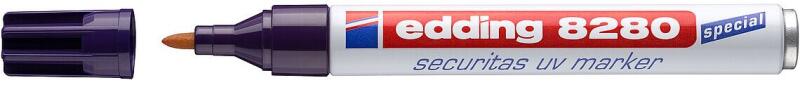 Edding 8280 Biztonsági UV filc, 1.5-3 mm A biztonsági és lopásvédelmi ágazatban alapvető fontosságú lehet az értékes tárgyak megjelölése anélkül, hogy azok megjelenése látszódna a jelölés. Ezért fejlesztette ki az Edding a 8280 Biztonsági UV filcet - egy olyan filcet, amelynek gyorsan száradó, tartós tintája csak ultraibolya fényben látható. Ez a filc gyakorlatilag mi