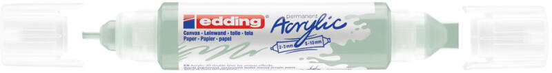 AKRIL MARKER 2-3MM ÉS 5-10MM 3D KÉTVÉGŰ EDDING 5400 MENTA Kétoldalú edding 3D akril tubus egyedi effektusokhoz és sötét és világos felületekre történő festéshez, ideális olyan anyagokhoz, mint a vászon vagy a festőpapír. - A kétoldalú tubus két különböző írócsúccsal rendelkezik 2 - 3 mm és 5 - 10 mm vonalvastagságban. - A kiváló minőségű, pigmentált, vízbázi