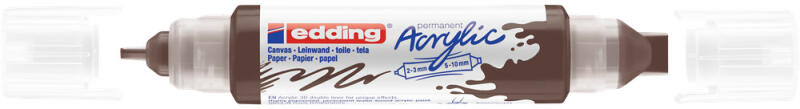 AKRIL MARKER 2-3MM ÉS 5-10MM 3D KÉTVÉGŰ EDDING 5400 BARNA Kétoldalú edding 3D akril tubus egyedi effektusokhoz és sötét és világos felületekre történő festéshez, ideális olyan anyagokhoz, mint a vászon vagy a festőpapír. - A kétoldalú tubus két különböző írócsúccsal rendelkezik 2 - 3 mm és 5 - 10 mm vonalvastagságban. - A kiváló minőségű, pigmentált, vízbázi