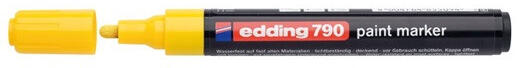 Edding 790 2-3mm sárga lakkmarker - Üveg, porcelán, műanyag, fém illetve szinte minden felület feliratozására, jelölésére alkalmas - Különösen ajánlott szennyezett felületekhez - Kerekített csúcs, műanyag test, permanent, lakkszerűen fedő festékkel töltve - Gyorsan száradó festék, írásképe törlés- és vízálló, magas fény- hő- és törlésálló - Festékadagolá