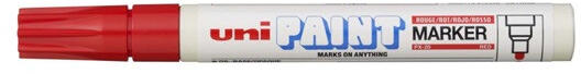 Uni PX-20 piros lakkmarker - A legmagasabb igényeket kielégítő, nagy fedőképességű lakkfilc, ipari jelölő és kreatív területekre - Minden felületen víz-, hő- és UV-álló az íráskép - Szalagon, szöveten az oldószer nem hagy nyomot - Alumínium tollszárban gazdaságos tintaadagolással, cserélhető heggyel, a tinta színével megegyező kupakkal rendelkezik - Írásvastagsá