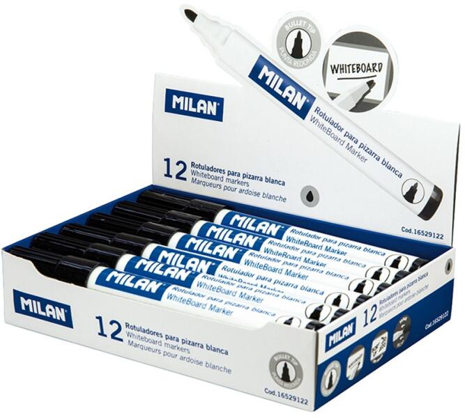 Milan táblaírófilc fekete gömb 16529122 Hivatalos magyarországi forgalmazótól. Leírás: Letörölhető marker fehér zománcozott táblákhoz, PVC-hez, üveghez, porcelánhoz. A tinta szárazon törölhető, fényálló. A töltelék egészségre ártalmatlan. Hengeres csúcs 4,7 mm átmérővel. Fekete szín.
