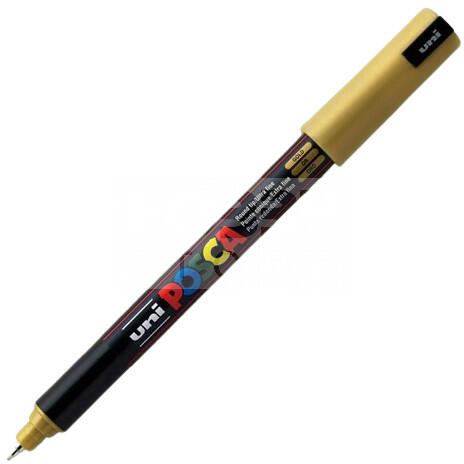 UNI POSCA PC-1MR ARANY színű tűhegyű dekormarker-filctoll 0.7 mm - 41961U Kiváló minőségű, erős heggyel rendelkező akril dekormarker . Használható szinte bármilyen felületen legyen az fa, fém, papír, üveg, textil, kő, műanyag. . Az Uni Posca filctollak különleges finomságú akrilfestéket tartalmaznak. A Posca akril filcek színezésre és rajzolásra is alkalmasak. Bel és